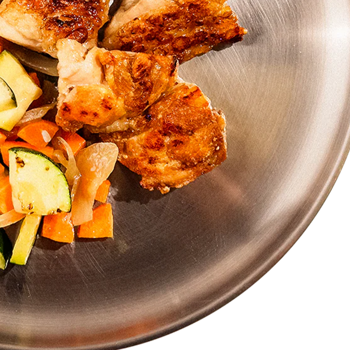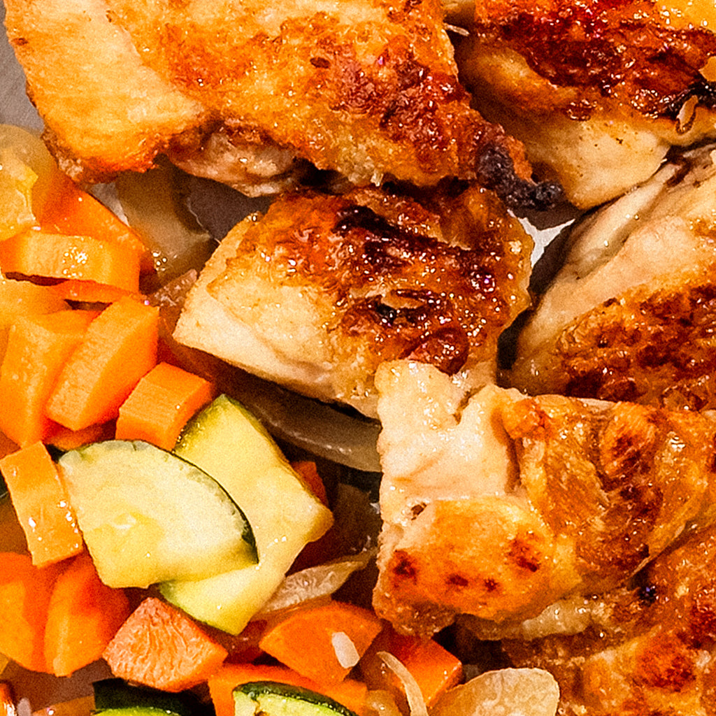 Contramuslo de pollo en su jugo con verduras