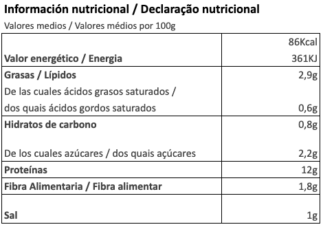 Tabla Nutricional